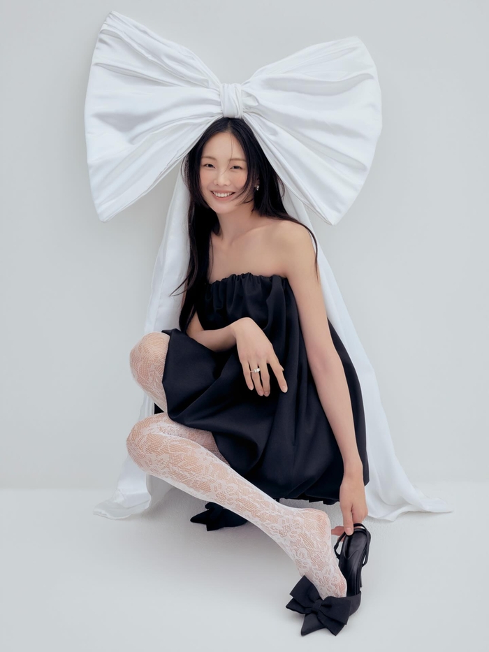 핑크빛 캐리어와 함께 연출한 컷에서는 소녀스러운 감성을, 커다란 화이트 리본과 블랙 드레스를 매치한 컷에서는 예술적인 실루엣을 강조하며 우아함을 드러냈다. 특히 생일 케이크를 앞에 둔 채 카메라를 응시하는 깊은 눈빛은 신비로운 분위기를 자아내며 보는 이들을 매료시켰다.
