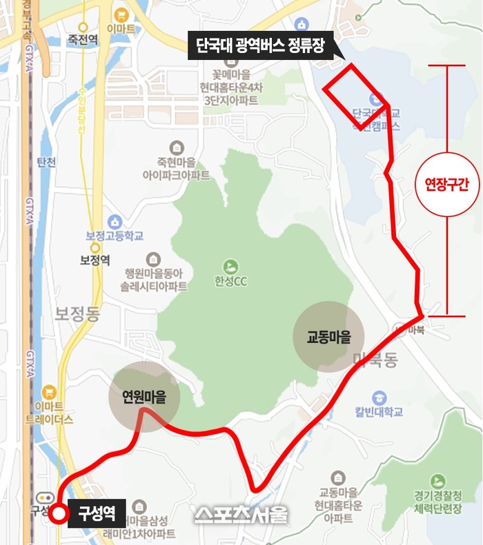 - 3월3일부터 기존 ‘현대연수원~구성역’에서 ‘단국대‧치과병원~구성역’으로 기점 변경해 운행