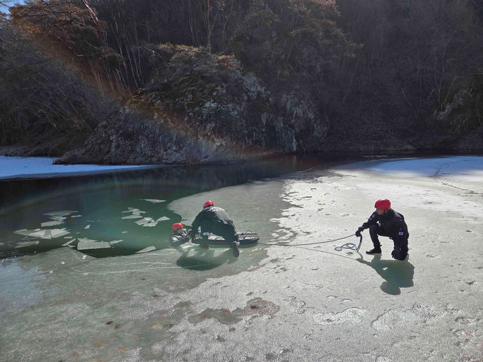 훈련 내용은 ▲빙상 인명구조 전문 교육 및 대원 안전사고 예방 교육 ▲저수지‧낚시터 등 빙상사고 위험지역 출동로 사전 점검 ▲구조차량 및 장비 100% 가동 상태 유지 점검 ▲익수자 구조 후 심폐소생술 등 응급처치 능력 강화 ▲유사시 인근 구조대 및 의용소방대 신속 동원체계 구축 등으로 구성됐다.