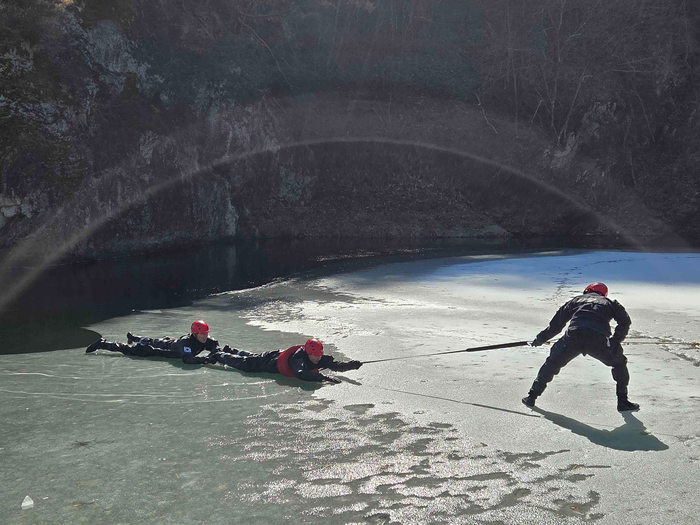 이번 훈련은 얼음 약화로 인한 빙상사고 위험이 증가하는 해빙기를 맞아 실제 상황을 가정한 실전 중심 교육으로 진행됐으며, 구조대원의 현장 대응 능력을 한층 끌어올리기 위해 추진됐다.