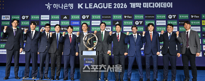 스포츠 | 축구 [포토] 파이팅 외치는 10개 구단 감독들 입력2026-02-25 12:30:30 북마크 페이스북 트위터 SNS 더보기 가글자크기설정 인쇄 SNS 더보기 닫기 네이버밴드 네이버블로그 URL복사 글자크기 설정 메뉴 닫기 글자크기 설정 시 다른 기사의 본문도동일하게 적용됩니다. 가 가 가 가 가 각 구단 감독들이 25일 서울 홍은동 스위스 그랜드 호텔에서 열린 K리그 2026 개막 미디어데이에서 포즈를 취하고 있다.2026. 2. 25.최승섭기자 thunder@sportsseoul.com 기사추천 0