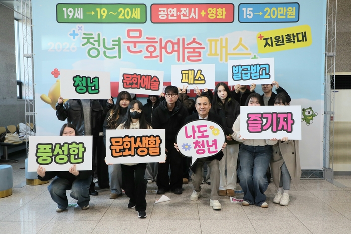 김진태 지사는 현장에서 청년들의 발급신청 과정을 직접 확인하며 신청 절차와 운영 상황을 점검하고, 올해 확대된 지원내용을 설명하며 도내 공연과 전시 등에 문화예술패스를 적극 활용해 줄 것을 당부했다.