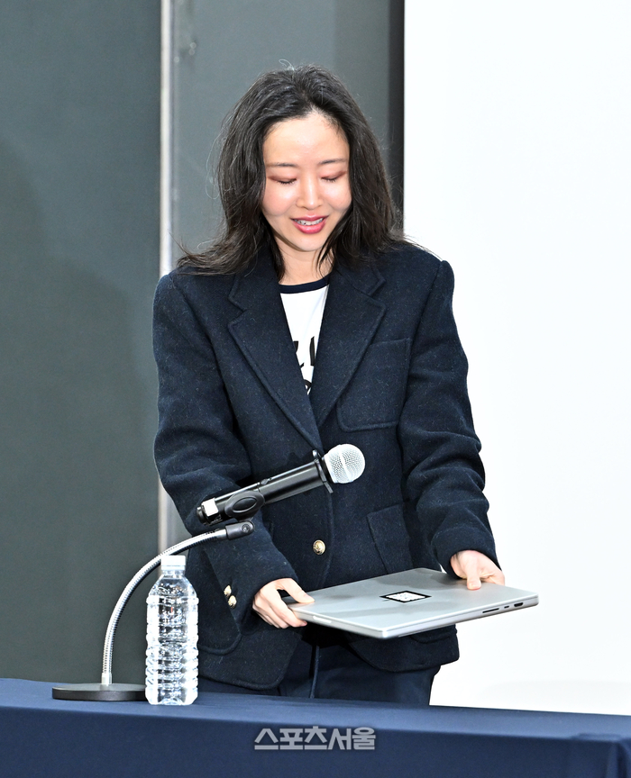 예정된 시간보다 10분 늦게 회견장에 모습을 드러낸 민희진 대표는 하이브에 “255억 내려놓을테니 모든 민·형사 소송 멈추자”고 제안하는 회견문만 읽은 뒤 질의응답 없이 곧바로 자리에서 일어나 퇴장했다. 2026. 2. 25.