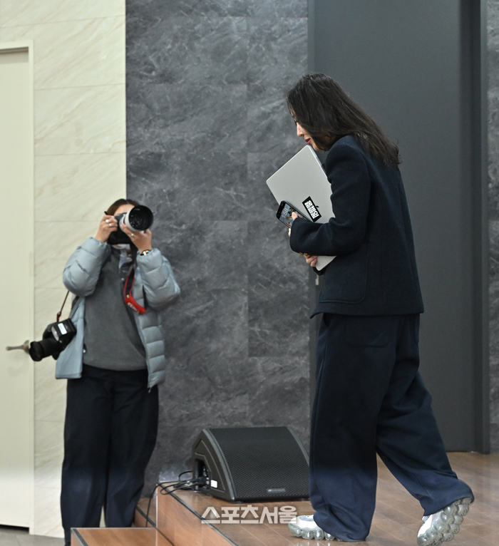 예정된 시간보다 10분 늦게 회견장에 모습을 드러낸 민희진 대표는 하이브에 “255억 내려놓을테니 모든 민·형사 소송 멈추자”고 제안하는 회견문을 읽은 뒤 질의응답 없이 곧바로 자리에서 일어나 퇴장했다. 2026. 2. 25.