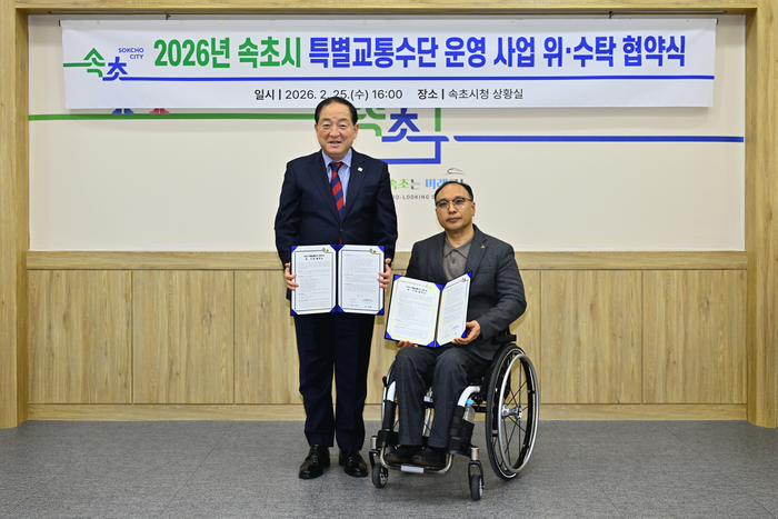 시는 2월 25일 시청 상황실에서 사단법인 강원특별자치도 지체장애인협회 속초시지회와 ‘속초시 교통약자 특별교통수단 운영’ 위·수탁 협약을 체결했다. 이번 협약은 장애인과 고령자, 임산부 등 이동에 불편을 겪는 시민들의 이동권을 안정적으로 확보하기 위해 마련됐다.