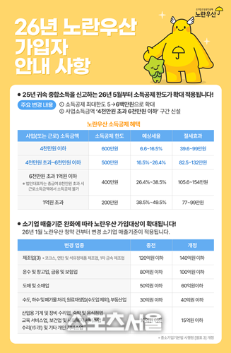 지원 대상은 연 매출액 3억 원 이하 소상공인 중 2026년도 노란우산 공제 신규 가입자다. 매월 공제부금 납입 시 월 3만 원씩, 1년간 최대 36만 원의 장려금이 적립된다.