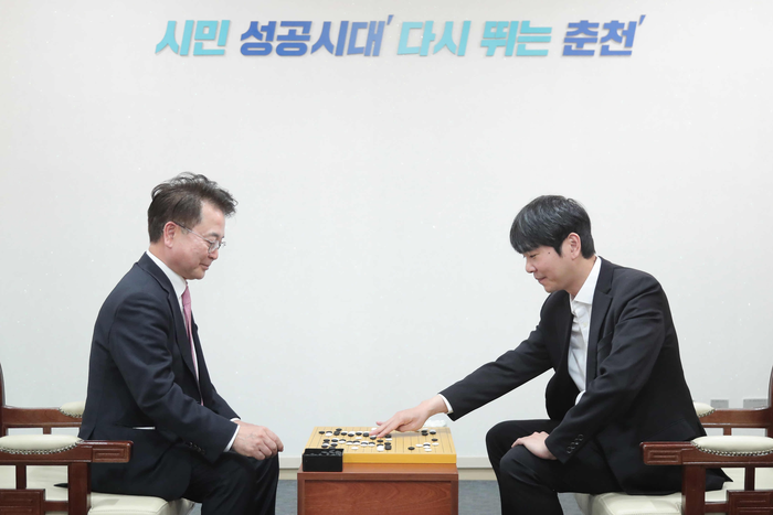 이날 특강에 앞서 육동한 시장은 접견실에서 이세돌 전 바둑기사와 차담을 가졌다. 이어 진행된 특강은 직원 300여 명이 참석한 가운데 ‘인생의 수읽기와 승세등비’를 주제로 열렸다.
