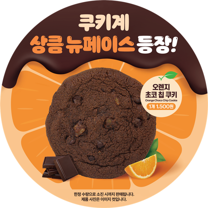 오렌지 초코칩 쿠키는 달콤한 초코와 상큼한 오렌지가 어우러진 제품으로, 식사 후 가볍게 즐길 수 있는 디저트 메뉴다.