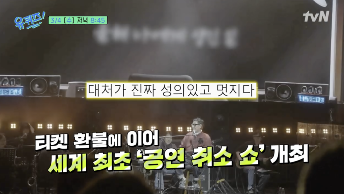 이번 방송에서 윤종신은 최근 화제가 되었던 ‘세계 최초 공연 취소 쇼’에 대한 뒷이야기도 털어놓을 예정이다. 기관지염으로 인해 공연을 취소해야 했던 위기의 순간을 오히려 관객들과 소통하는 ‘립싱크 청음회’라는 기발한 아이디어로 승화시킨 그의 프로다운 대처와 유머 감각이 다시금 조명될 전망이다.