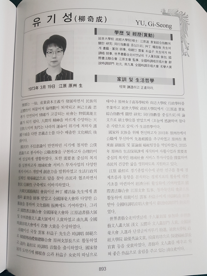 이번 등재는 원주시 공직자 가운데 최초 사례로, 원주시와 공직사회의 위상을 한층 높이는 계기가 됐다는 평가를 받고 있다.