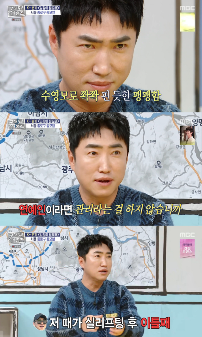 주우재는 “들어오기 전까지 수영모 쓰고 있다가 들어왔냐”며 팽팽한 얼굴에 놀랐고, 장동민은 “연예인이라면 관리라는 걸 하지 않냐”며 실리프팅 시술을 받았다고 밝혔다.