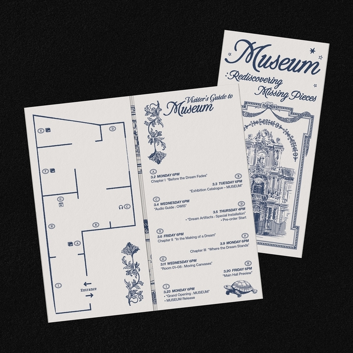 특히 이번 스케줄러 이미지는 관람객들을 안내하는 리플릿 형태로 앨범명 ‘뮤지엄’과 연결되는 재치 있는 구성이 눈길을 끈다. 박물관 가이드 북을 연상시키는 감각적인 디자인은 앞서 공개된 ‘기억의 박물관’으로 초대하는 트레일러 영상, 티켓 형태의 커밍순 포스터와 이어지며 팬들의 폭발적인 반응을 이끌어내고 있다.