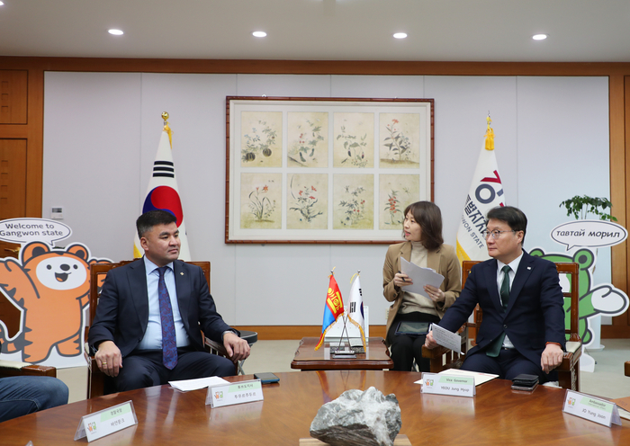 [스포츠서울ㅣ춘천=김기원기자]강원특별자치도는 2월 26일(목), 몽골 투무르추드르 튜브도지사가 교류 확대 방안 논의를 위해 도청을 방문해 여중협 행정부지사와 면담을 가졌다고 밝혔다.