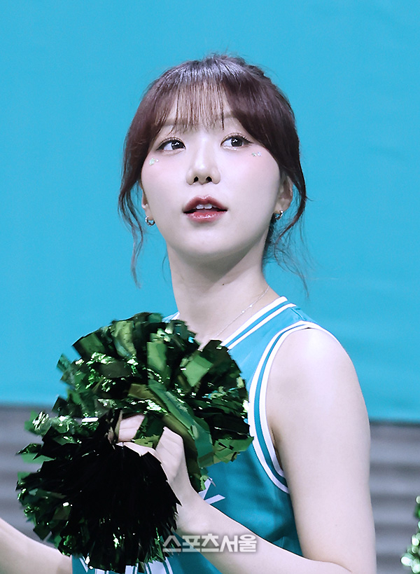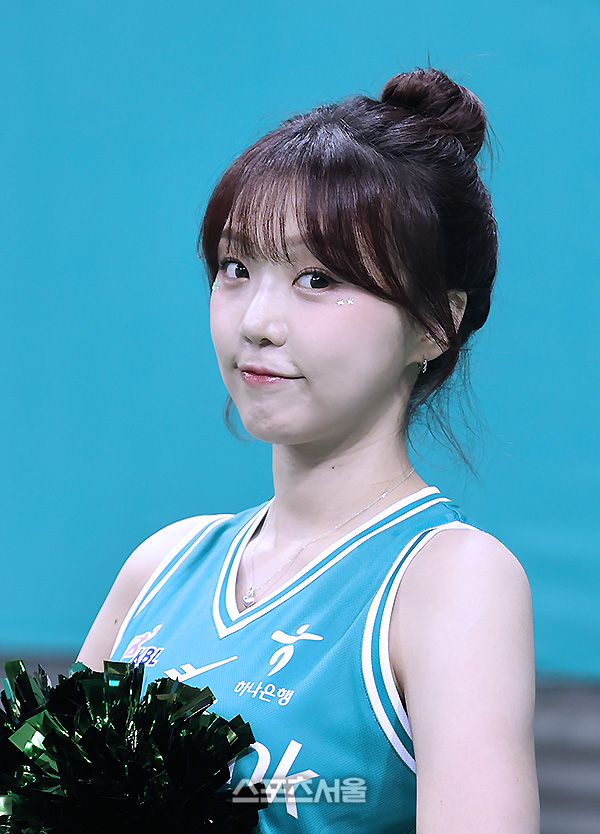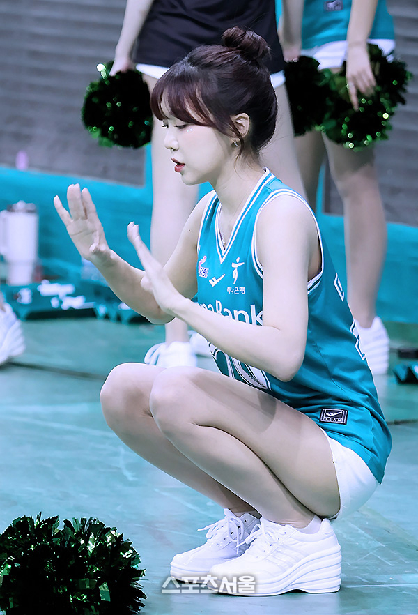 여자 프로농구 하나은행과 삼성생명의 경기가 진행되고 있던 중, 잠깐의 쉬는 틈을 탄 하나은행 치어리더 이주희가 안무연습에 열중하고 있다.