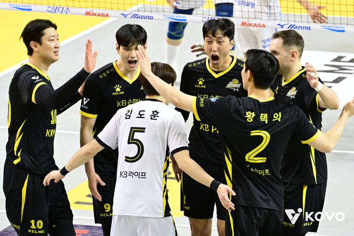 KB손해보험은 28일 서울 장충체육관에서 열린 우리카드와의 진에어 2025~2026 V리그 남자부 6라운드 경기에서 세트스코어 3-2(25-20 23-25 25-20 19-25 15-13) 승리했다.