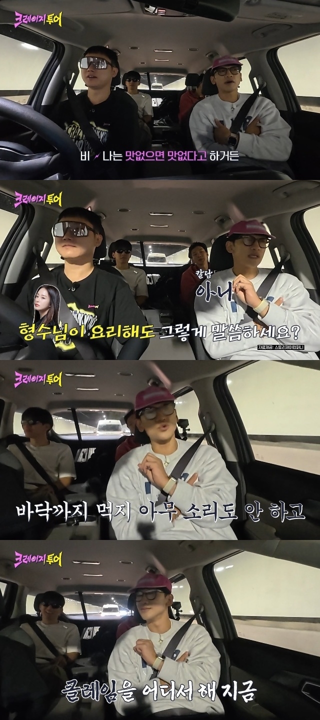이에 이승훈이 “형수님이 요리하셔도 그렇게 하시냐”고 묻자 비는 즉시 “아니 바닥까지 먹지. 아무 소리도 안 하고”라고 답했다. 이승훈은 “솔직한 게 도움 된다고 하지 않았냐”하고 비의 말을 지적하자 비는 “그냥 차려주면 감사한 거다. 무슨 말을 하고 있냐. 클레임을 어디서 하냐 지금. 미쳤어?”라며 이승훈의 말을 부정했다.