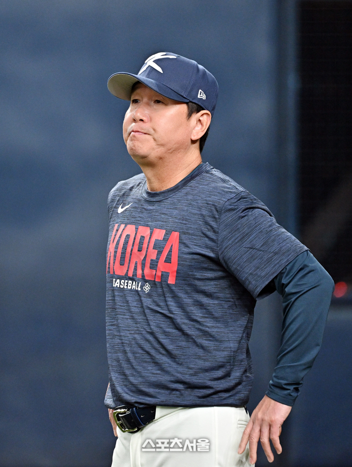 WBC 대한민국 야구대표팀의 류지현 감독이 2일 일본 오사카 교세라돔에서 열리는 한신 타이거즈의 경기에 앞서 훈련 중인 선수들을 지켜보고 있다. 2026. 3. 2.