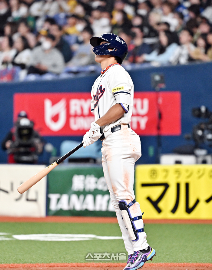 WBC 대한민국 야구대표팀의 김도영이 2일 일본 오사카 교세라돔에서 열린 한신 타이거즈와의 연습경기 5회초 1사 한신 투수 하야가와를 상대로 동점 솔로 홈런을 치고 있다. 2026. 3. 2.