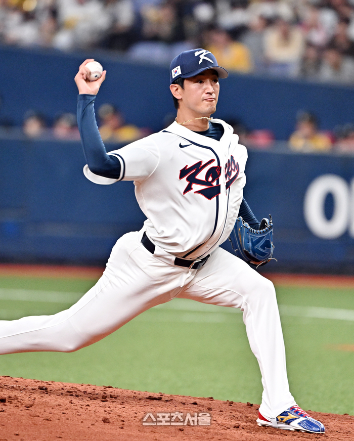 WBC 대한민국 야구대표팀의 고영표가 2일 일본 오사카 교세라돔에서 열린 한신 타이거즈와의 연습경기 5회말 등판해 힘차게 공을 던지고 있다. 2026. 3. 2.