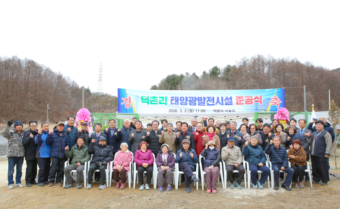 덕촌리 마을회(이장 고광수)는 2일 오전 11시, 공근면 덕촌리 현장에서 김명기 횡성군수, 표한상 횡성군의회 의장, 도·군의원, 지역 기관단체장 및 주민 등 100여 명이 참석한 가운데 태양광발전시설 준공식을 개최했다.