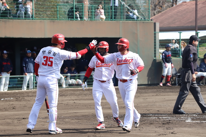 SSG는 3일 일본 미야자키 아야니시키바루 구장에서 열린 롯데와 평가전에서 10-5로 승리했다. 직전 라쿠텐전 대승을 포함하면 2승째다. 경기 초반부터 선취점을 뽑은 SSG는 5회말 솔로 홈런을 연이어 내주며 한때 추격을 허용했지만, 5점 차 리드를 지켜냈다.