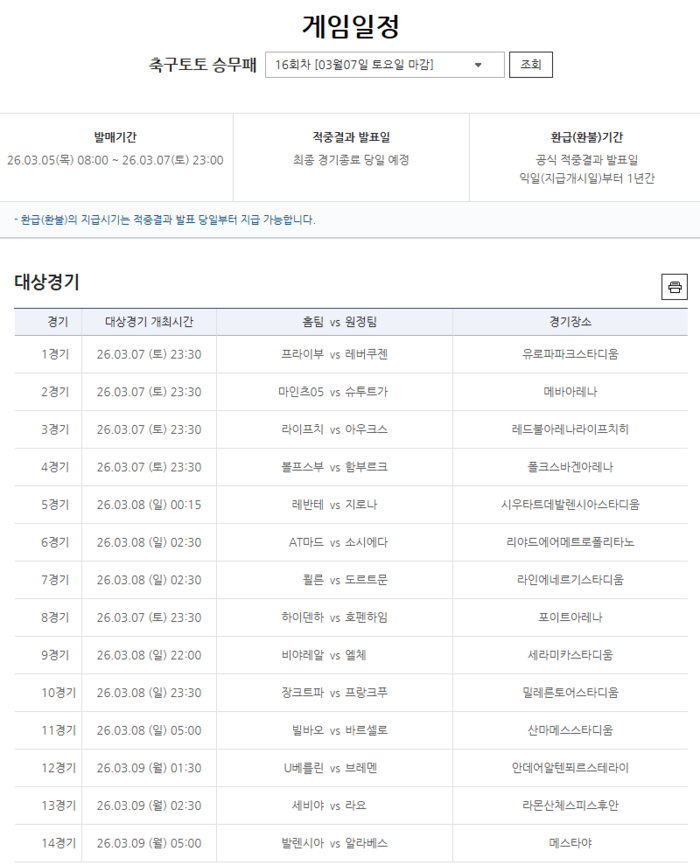 한편 축구토토 승무패 16회차는 5일 오전 8시부터 발매를 개시해 7일 오후 11시까지 구매할 수 있다.