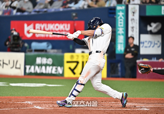 오키나와 일정을 마치고 일본 오사카로 향했다. 2일 한신과 공식 평가전이다. 리드오프로 나섰다. 이번에도 홈런을 쐈다. 5회초 2-3에서 3-3 동점을 만드는 귀중한 대포다. 3일 오릭스전에서는 2회초 2-0에서 5-0으로 달아나는 스리런 홈런까지 터뜨렸다.