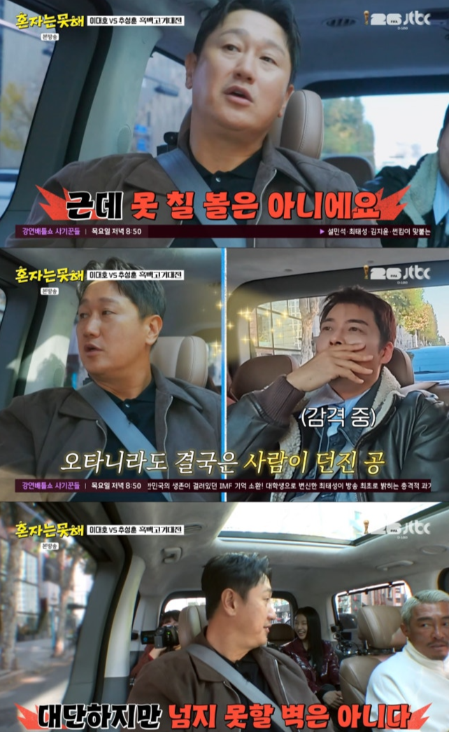 3일 JTBC ‘혼자는 못 해’에는 이대호가 게스트로 출연해 추성훈, 전현무 등과 함께 ‘고기 끝장 투어’에 나섰다.