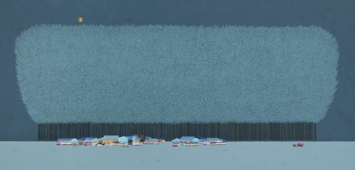 김용일은 오랜 시간 ‘집’을 주요 모티프로 삼아 아크릴과 유화로 작업해왔다. 그의 작품 속 집은 특정 지역의 기록이 아니다.