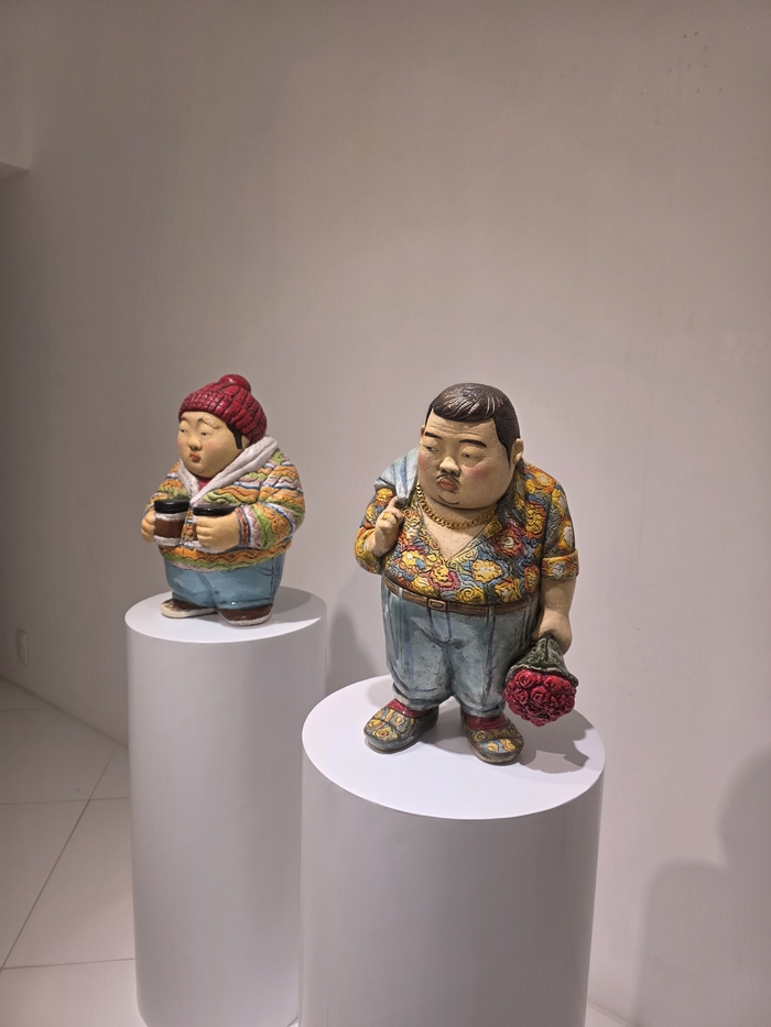 작품 속 인물들은 짜리몽땅한 체구와 불룩한 배, 어딘가 어설픈 표정과 촌스러운 차림을 하고 있다. 첫인상은 과장되고 우스꽝스럽지만, 그 안에는 평범한 우리의 모습이 담겨 있다.