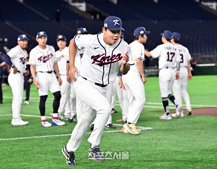 WBC 대한민국 야구대표팀의 소형준이 4일 일본 도쿄 도쿄돔에서 진행된 훈련 중 캐치볼로 몸을 풀고 있다. 소형준은 5일 대한민국의 첫 상대인 체코전 선발로 낙점됐다. 2026. 3. 4.