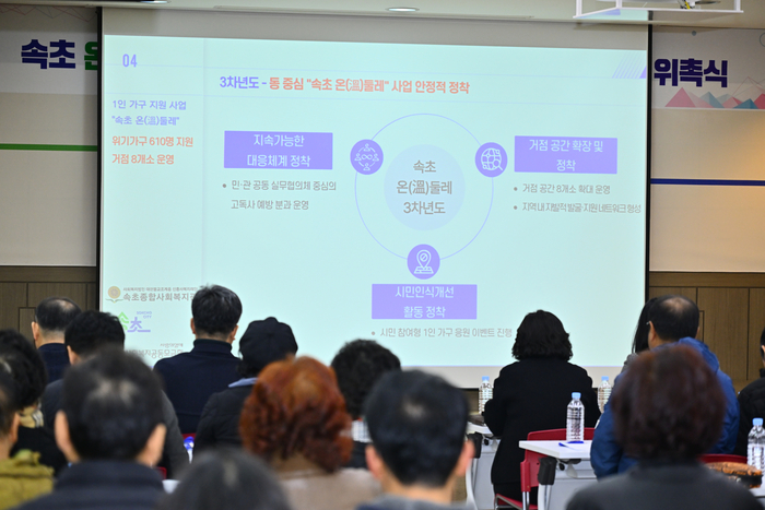정지현 속초종합사회복지관 관장은 “중장년 1인 가구는 사회적 고립이 장기화될 경우 고독사 등 심각한 위기로 이어질 수 있다”며 “속초 온(溫)둘레 사업을 통해 위기 가구를 조기에 발견하고 주민 생활권 가까이에서 지속적으로 돌보는 지역 밀착형 통합복지 모델을 구축하겠다”고 말했다.