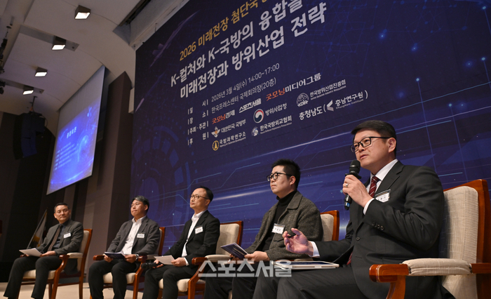 스포츠서울·굿모닝경제·굿모닝미디어그룹은 4일 서울 중구 한국프레스센터에서 ‘2026 미래전장 첨단국방산업 포럼’을 개최했다. ‘K-컬처와 K-국방의 융합을 통한 미래전장과 방위산업 전략’을 주제로 열린 이날 포럼에서는 AI와 유·무인 복합체계(MUM-T)가 가져올 국방의 미래가 집중 조명됐다.