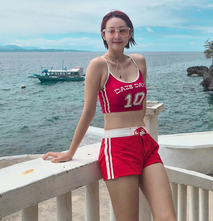 특히 짧은 단발머리에 투명한 선글라스를 매치한 그녀는 특유의 상큼한 미소와 더불어, 평소 꾸준한 운동과 스쿠버 다이빙으로 다져진 탄탄한 몸매를 드러내 시선을 사로잡았다.