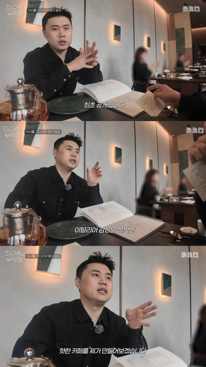 다른 사람에게 넘기면 되지 않냐는 침착맨에게 그는 “이건 운명인 것 같다. 하늘이 한 번 더 도전해보라고 하는 것 같다”며 “이번에는 힙한 카페를 해보려고 한다. 이탈리아 감성은 조금만. 에스프레소 바 이런 거 안 하고 정석대로 할 거다”라고 털어놨다.