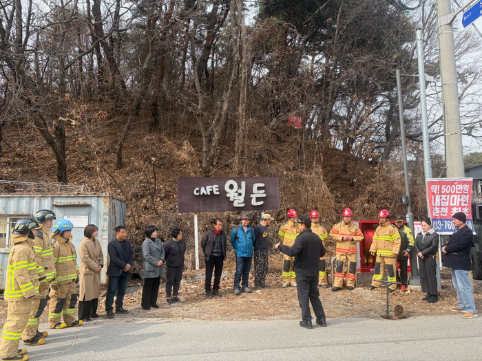 주요 활동으로는 산림 인접 시설 보호를 위한 ‘선제적 예비주수’와 홍보방송을 통해 주민들의 경각심을 높였으며, 소방차 도착 전 주민 주도의 초기 진화가 가능하도록 직접 호스릴을 전개하고 방수 및 잔수 제거를 실습하는 ‘비상소화장치 사용법 교육’이 중점적으로 진행됐다.