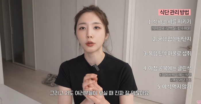 식단과 운동이 중요하다고 밝힌 성해은은 현재 실천 중인 식단 원칙 세 가지를 공개했다. 그는 “식이섬유, 단백질, 탄수화물 순서로 먹기, 균형 잡힌 탄단지, 복합 탄수화물 섭취하기, 아침 공복에는 클린식, 야식 절대 금지”등을 설명했다.