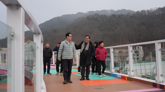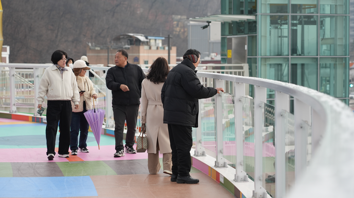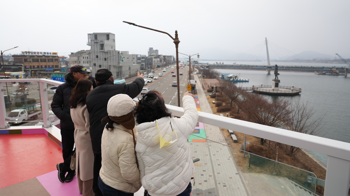 [스포츠서울ㅣ춘천=김기원 기자]지난 5일부터 시민들에게 개방한 ‘소양아트서클’에 시민들의 발길이 이어지고 있다. 6일 오후 춘천시민들이 보행데크를 걸으며 소양강과 도심 경관을 감상하고 있다.