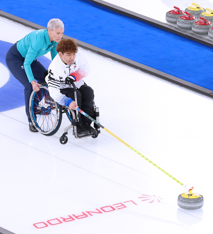 백혜진-이용석 조는 6일 오전 9시5분(현지시간) 이탈리아 코르티나 컬링 올림픽 스타디움에서 열린 2026 밀라노·코르티나 동계패럴림픽 휠체어 컬링 믹스더블 예선 4차전 중국 왕멍-양진차오 조와 경기에서 6-10으로 패했다.