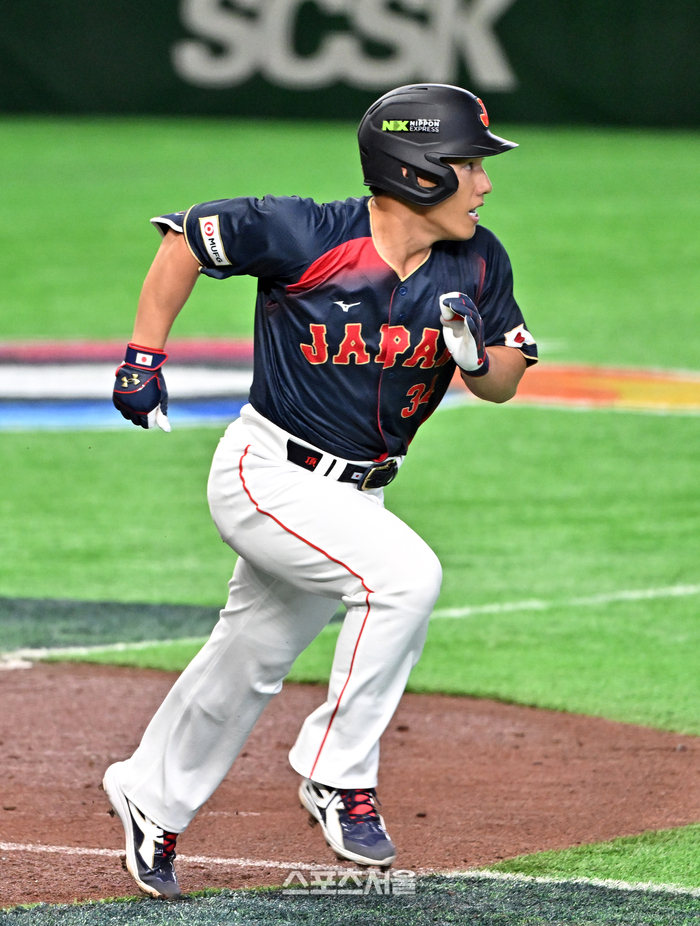 일본 야구대표팀의 요시다가 6일 일본 도쿄 도쿄돔에서 열린 2026 월드 베이스볼 클래식(WBC) 조별리그 대만과의 경기 2회초 2사 1루 상황에서 3루타를 치고 베이스 러닝을 하고 있다. 2026. 3. 6.