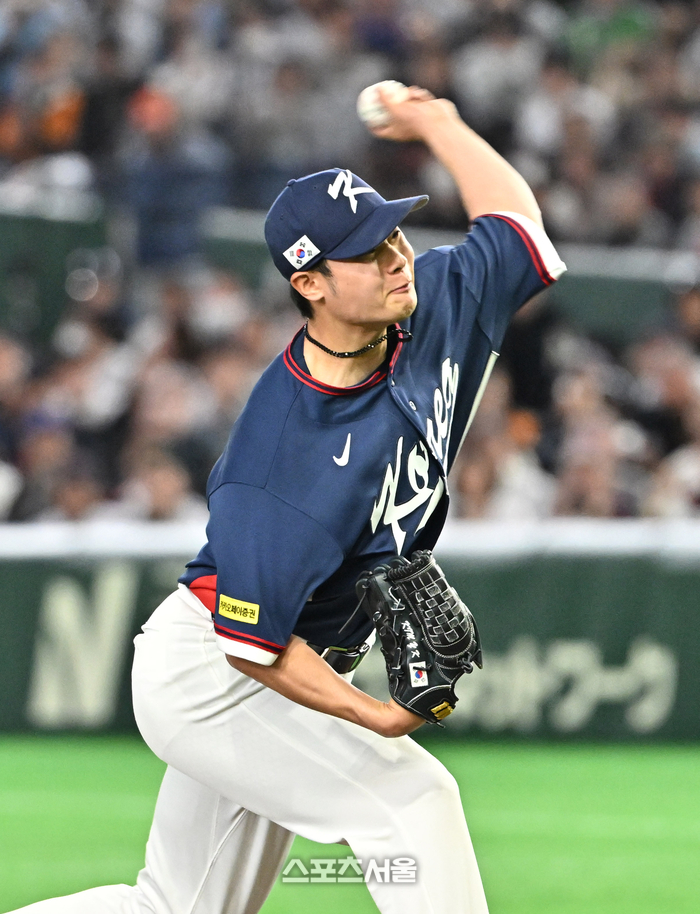 대한민국 야구대표팀의 김영규가 7일 일본 도쿄 도쿄돔에서 열린 2026 월드 베이스볼 클래식(WBC) 조별리그 일본과의 경기 7회말 등판해 힘차게공을 던지고 있다. 2026. 3. 7.