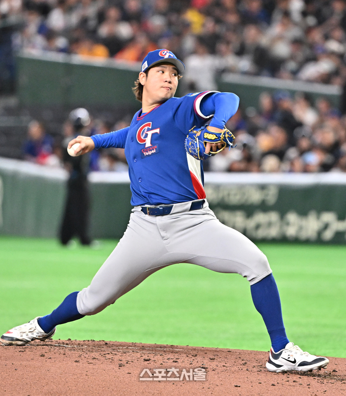 대만 야구대표팀의 구린루리양이 8일 일본 도쿄 도쿄돔에서 열린 2026 월드 베이스볼 클래식(WBC) 조별리그 한국과의 경기에 선발 등판해 힘차게 공을 던지고 있다. 2026. 3. 8.