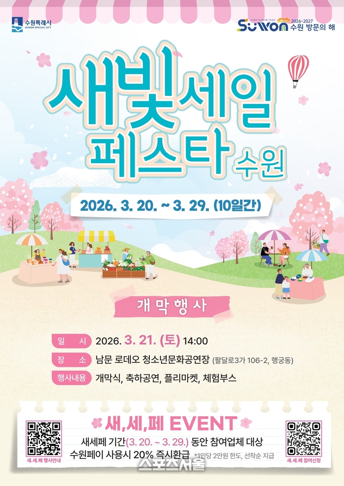 〔스포츠서울│수원=좌승훈기자〕경기 수원시는 오는 20일부터 29일까지 ‘제7회 새빛세일페스타 수원’을 개최한다고 8일 밝혔다.