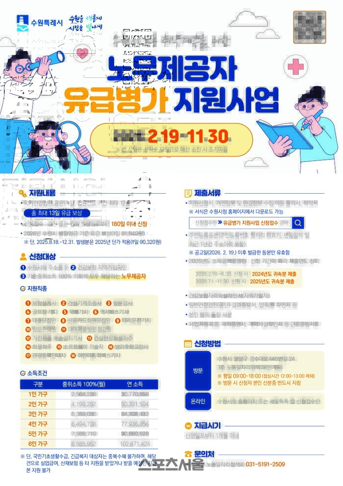 〔스포츠서울│수원=좌승훈기자〕경기 수원시는 노동취약계층 노무 제공자에게 유급병가를 지원한다.