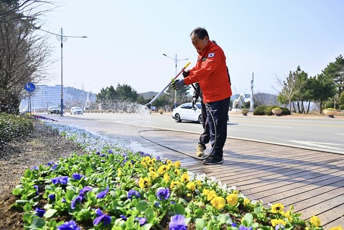 시는 설악해맞이공원 일원을 시작으로 4월 중순까지 주요 도로 가로화단과 원형 화분에 팬지 등 38만 본의 봄꽃을 심을 계획이다.