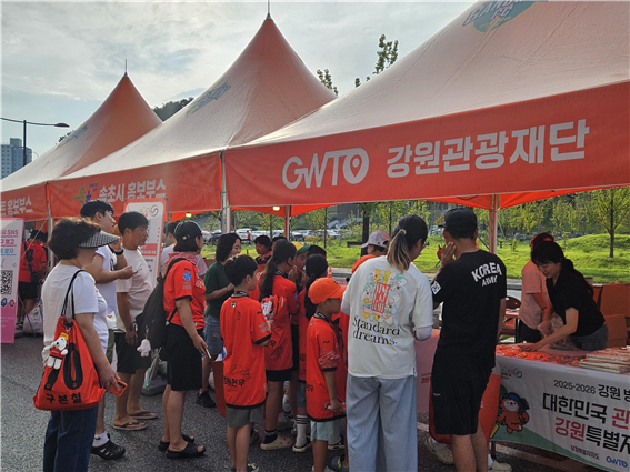 한편, 올해 홍보부스에서는 축구 경기를 테마로‘참여형 이벤트’를 기획해 관람객들에게 색다른 즐거움을 선사한다. 부스 방문객이 직접 미니 골대에 축구공을 차 넣어 득점하는 슈팅 이벤트를 진행해 개막식 현장의 응원 열기를 한층 더 뜨겁게 달굴 계획이다. 또한, 강원의 다채로운 관광 콘텐츠와 유익한 여행 정보를 지속적으로 받아볼 수 있도록 재단 공식 사회관계서비스망(SNS)에‘구독 이벤트’도 함께 진행할 계획이다.