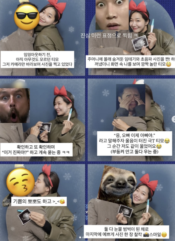 남편에게 깜짝 이벤트로 임신 사실을 알린 오또맘은 스티커 사진으로 기념하며 추억을 남겼다.