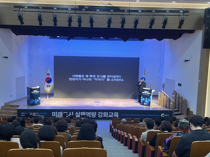 [스포츠서울ㅣ춘천=김기원 기자]춘천시는 10일 시청에서 직원들을 대상으로 ‘미래도시 실행역량 강화교육’ 특강을 개최했다.