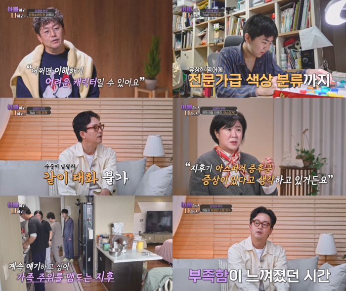 김정태의 아내도 아들에 대한 고민을 밝혔다. 그는 “아들에게 ‘아스퍼거 증후군’이 있다고 생각한다. 어릴 때부터 애가 하나에 빠지면 무서울 정도로 몰두했다”며 “남에게 무관심하고 사람 마음을 헤아리지 못하는 단순한 스타일이다. 그런 반면에 영어를 또 저렇게 잘하는 건 좋은 현상이니까…양날의 칼이다”고 말했다.