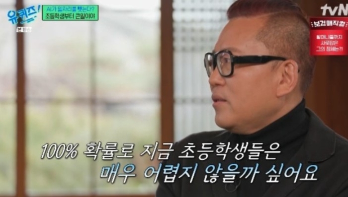 전날인 11일 방송된 tvN ‘유 퀴즈 온 더 블럭’에서 AI를 연구하는 뇌과학자 카이스트 김대식 교수가 “100% 확률로 지금 초등학생들은 매우 어려울 것 같다”고 전망하자 유재석이 “우리 애들은 어떡하냐. 제가 지금 초등학생 자녀가 있다”고 걱정했다.